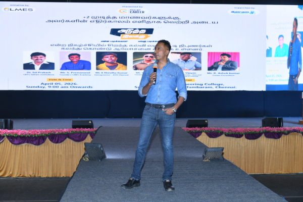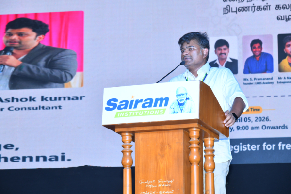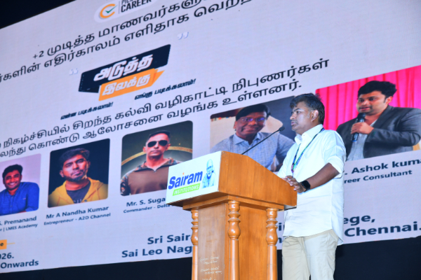 Sairam Institutions, in association with LMES, successfully conducted the impactful awareness program “Adutha Ilakku” (Next Target), where eminent education and career experts shared valuable guidance on higher education pathways.